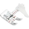 Лапка предназначена для шитья от края ткани с отступом до 27 мм, а также для выполнения параллельных строчек. Направитель позволяет регулировать и задавать расстояние между строчками, делая параллельные швы от края ткани и декоративные строчки на необходимом расстоянии друг от друга.